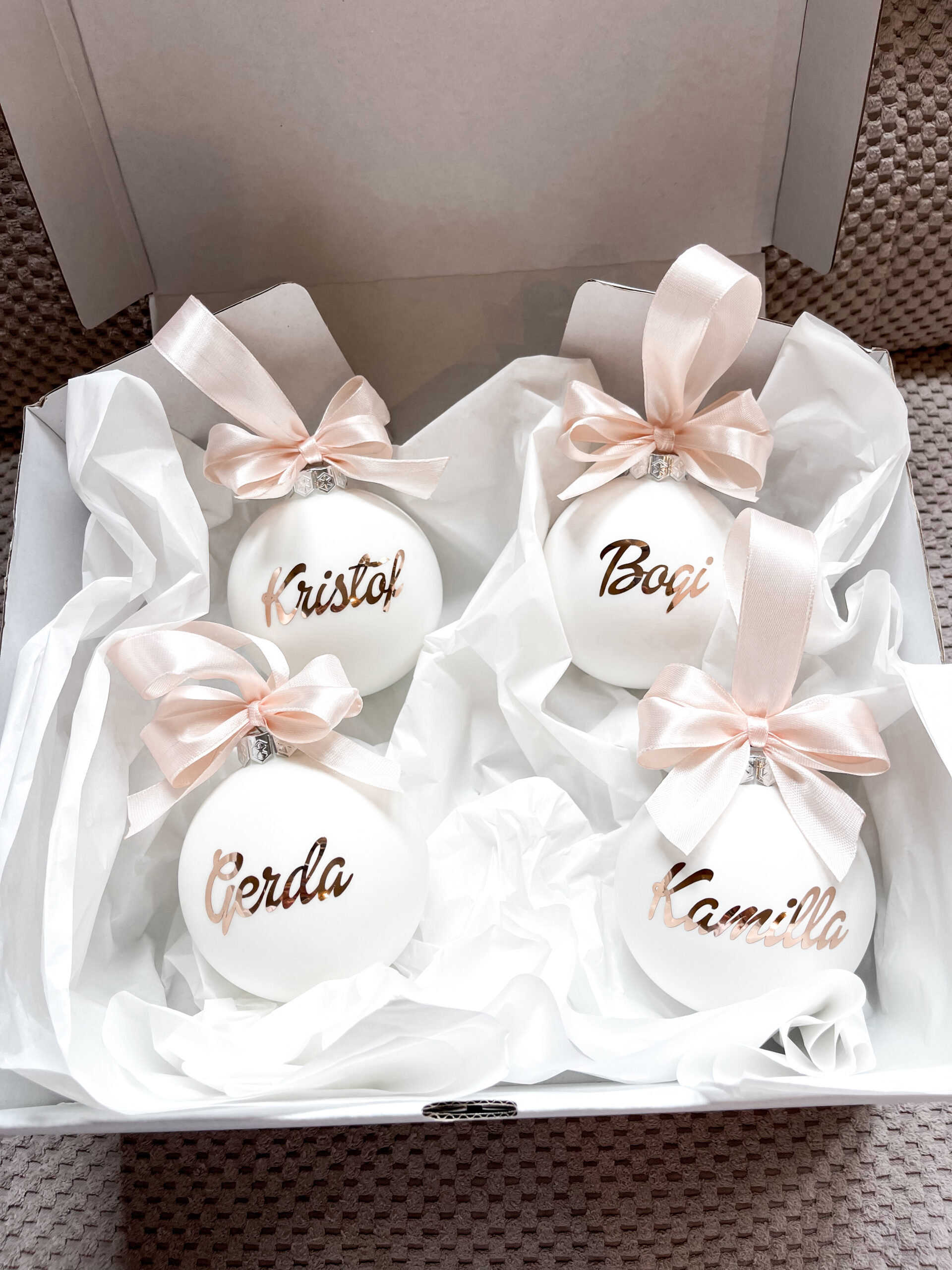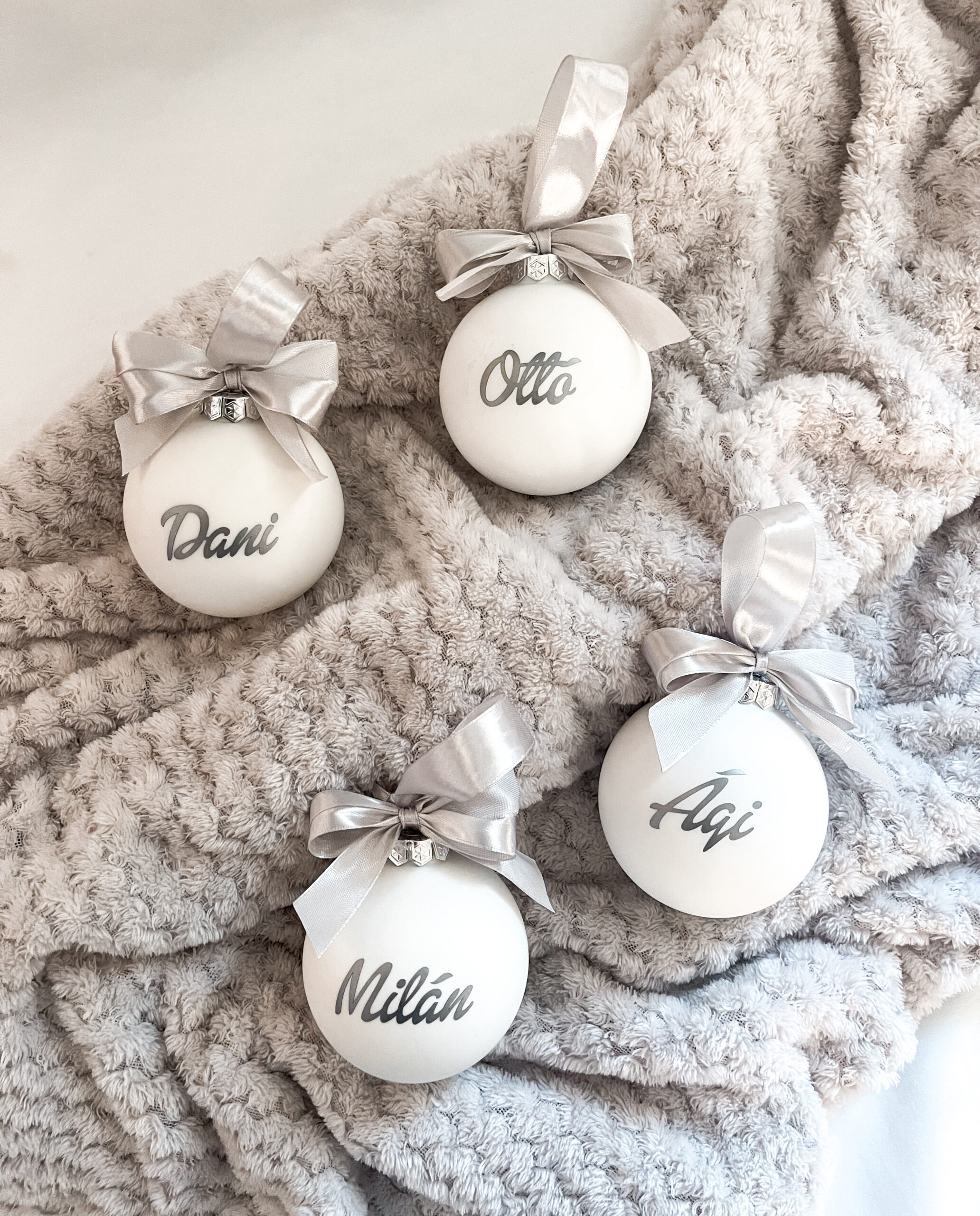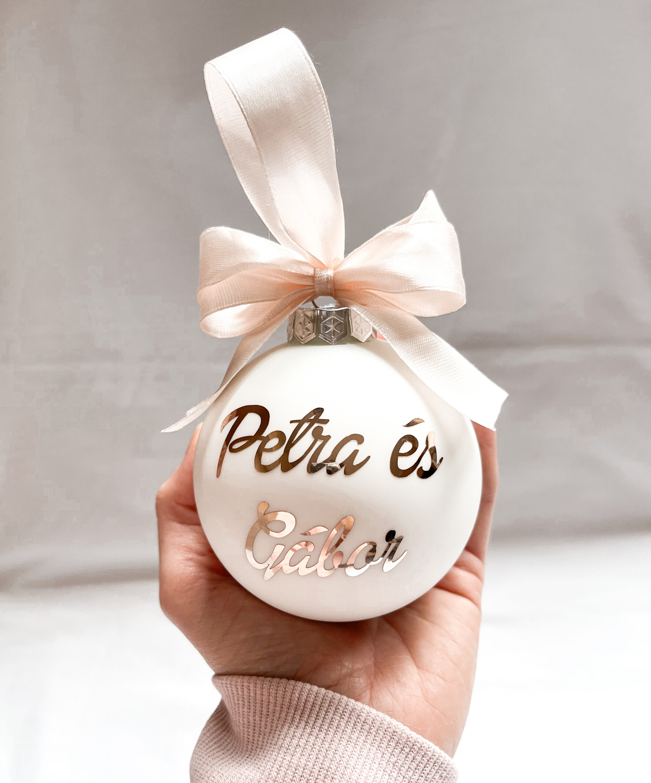 Varázsold egyedivé a karácsonyfát feliratozott üveggömbökkel. Nagyszerű választás lehet szülőknek, nagyszülőknek a gyerekek/unokák neveivel. Vagy akár a saját fádat is díszítheted velük, kerülhet rá név, felirat vagy egy dátum. (max. 4 szó fér el a gömbre)